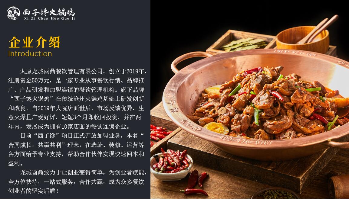 太原龍城酉鼎餐飲管理有限公司,創(chuàng)立于2019年, 注冊(cè)資金50萬元,是一家專業(yè)從事餐飲行銷、品牌推廣、產(chǎn)品研發(fā)和加盟連鎖的餐飲管理機(jī)構(gòu)。旗下品牌“西子饞火鍋雞”在傳統(tǒng)滄州火鍋雞基礎(chǔ)上研發(fā)創(chuàng)新和改良,自2019年大院店面世后,市場(chǎng)反饋優(yōu)異,生意火爆且廣受好評(píng),短短3個(gè)月即收回投資,并在兩年內(nèi),發(fā)展成為擁有10家店面的餐飲連鎖企業(yè)。