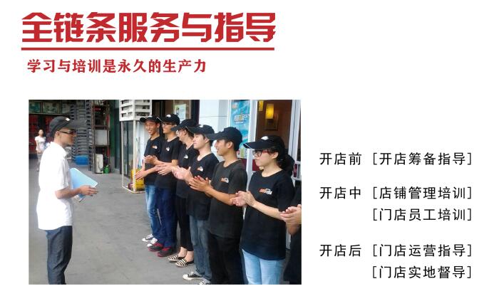 五,培訓(xùn)支持:免費(fèi)對(duì)加盟店進(jìn)行理論和實(shí)操培訓(xùn),著重對(duì)管理人員和技術(shù)人員進(jìn)行考核評(píng)估。